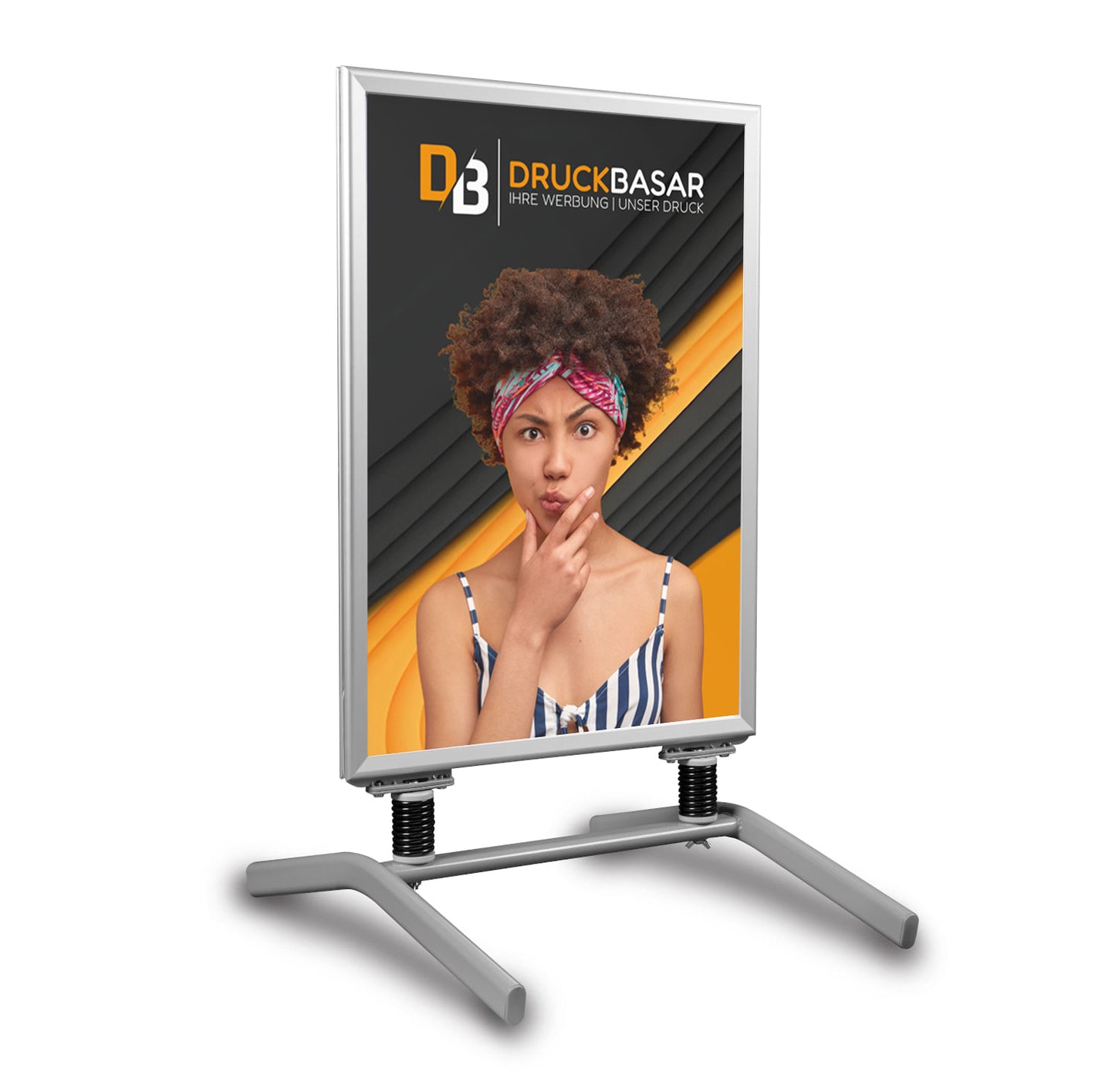 Der Kundenstopper Spyder ist ein beliebter Werbeträger für den Außenbereich – besonders standfest, windflexibel und einfach in der Handhabung. Durch den auf Federn gelagerten Rahmen passt sich das System Bewegungen durch Wind an, ohne an Stabilität zu verlieren. Die weit ausgestellten Standfüße garantieren festen Halt – ganz ohne Wassertank oder zusätzliche Beschwerung.